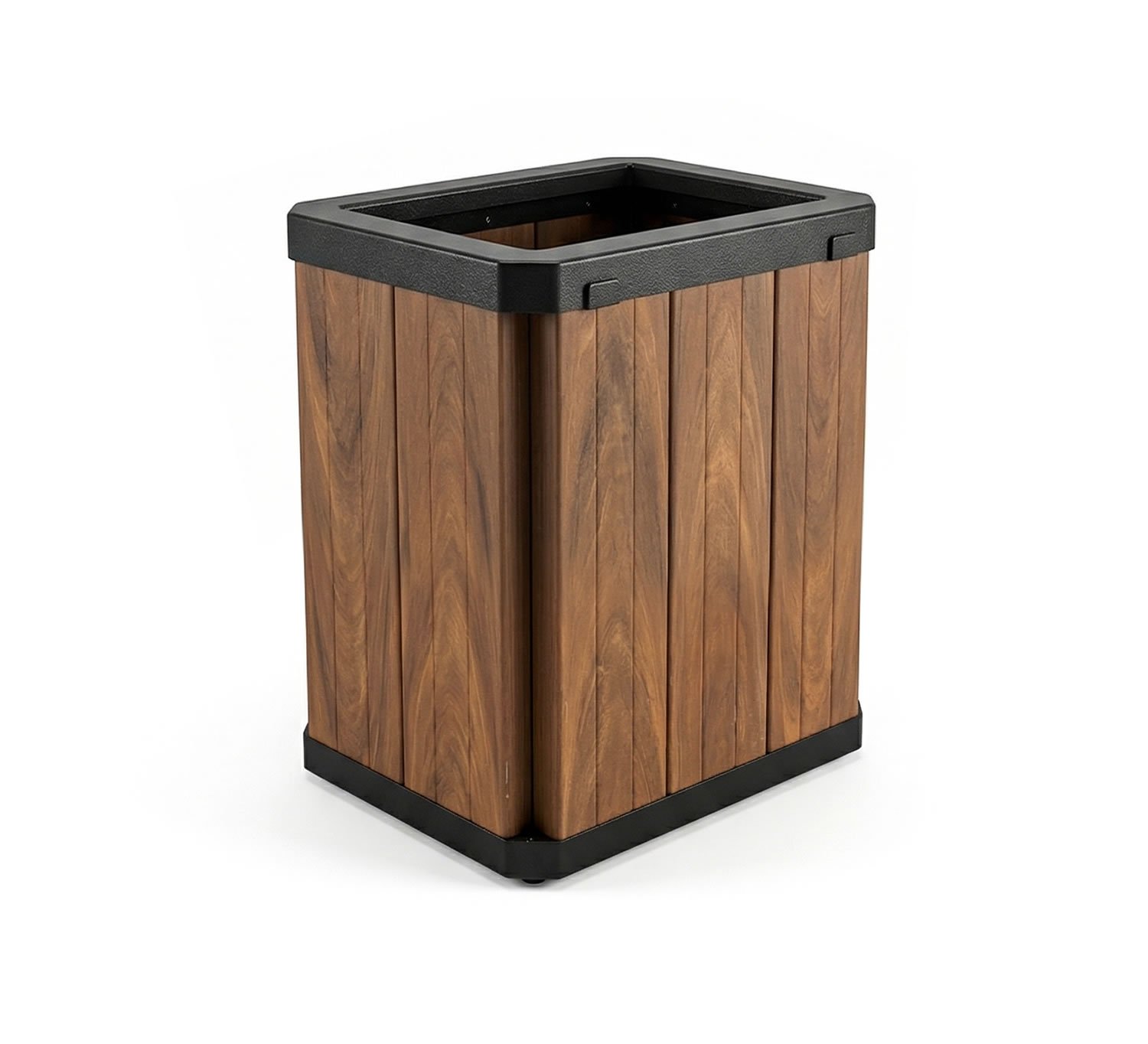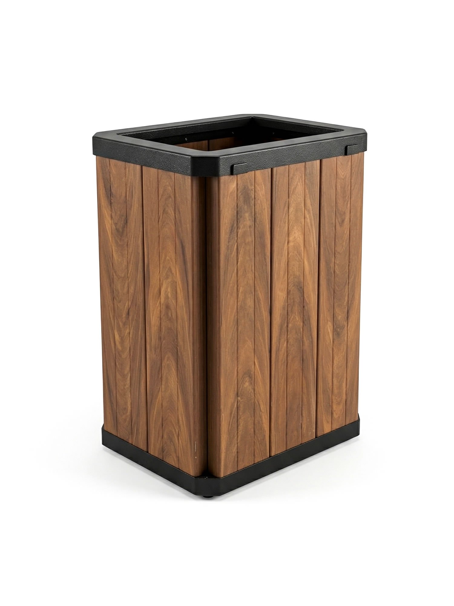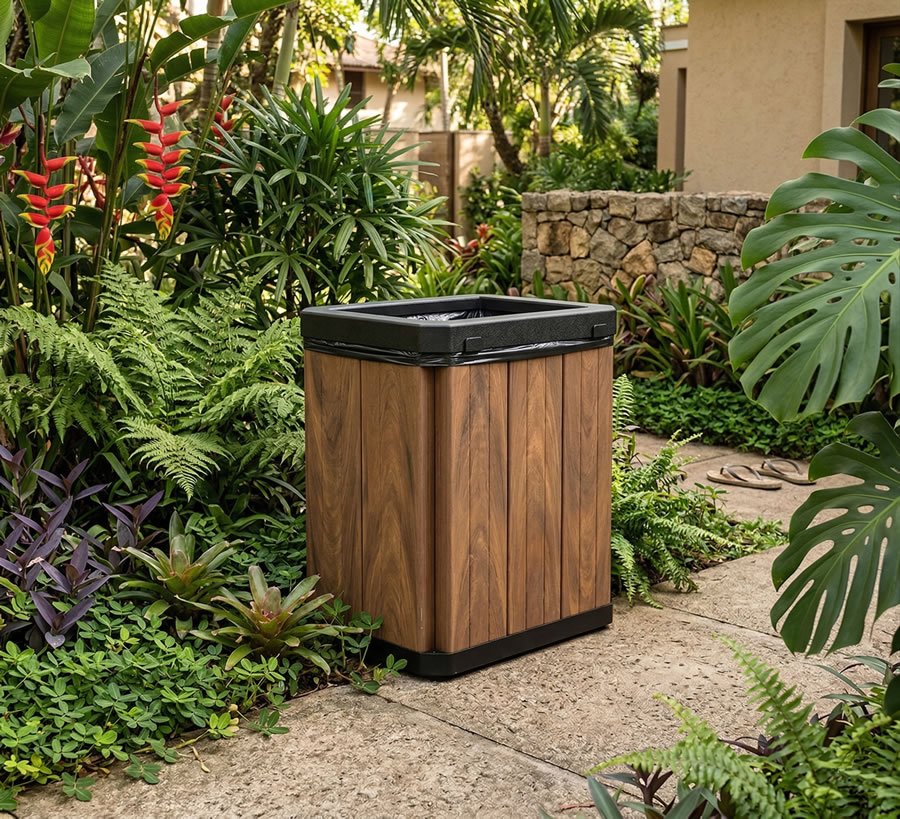 A linha Urban de lixeiras é feita para quem busca um modelo retangular com estrutura de fácil montagem e deslocamento. Sua estrutura é em madeira plástica encapsulada (perfis de 153x60mm) na cor ipê e aro + base em plástico injetado na cor preta. Nessa linha você encontra em dois tamanhos, com ou sem suporte. Conheça nossos modelos: